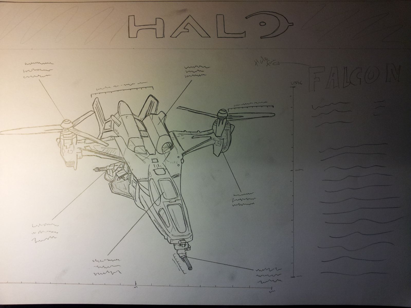 Early stages of Falcon drawing.