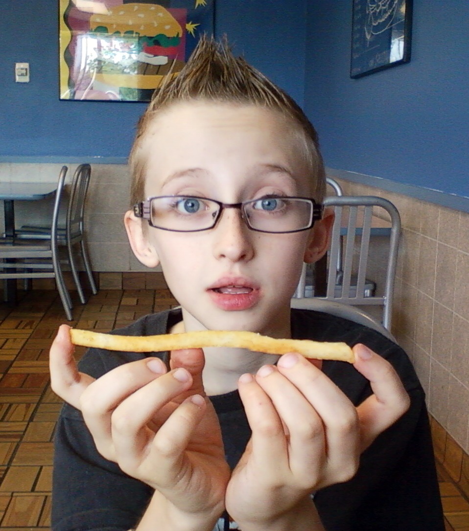 My son was so amuse by the size of his "frie" that he had me take a picture of it. What a cook!